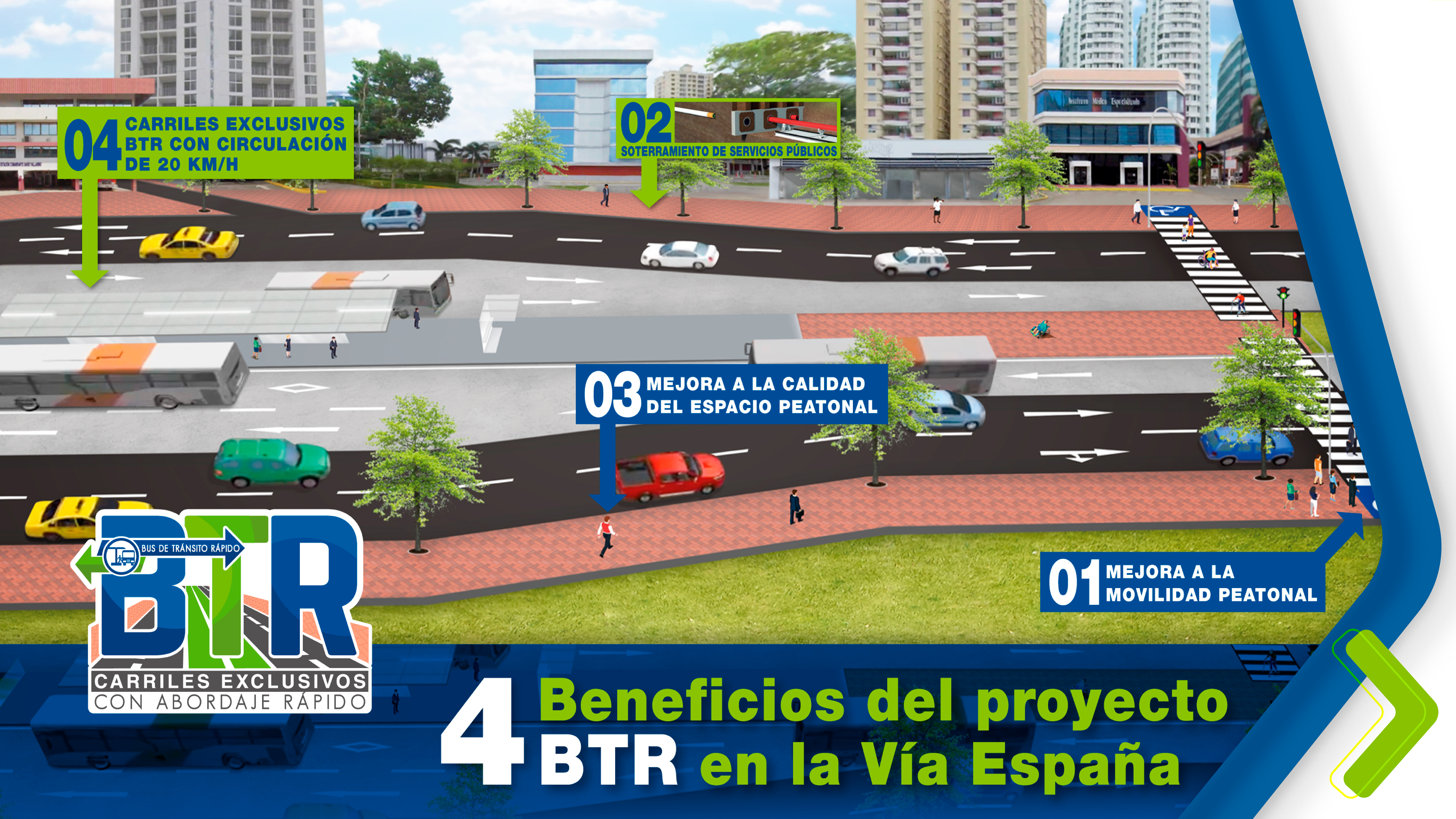 El proyecto del BTR no lo afectará, pues esta es una solución de transporte masivo previa a una intervención de mayor inversión como el metro. El estudio de prefactibilidad de la nueva red maestra del sistema Metro identifica que la línea 4 pasa por este tramo de Vía  España, y que el mismo tendrá que ser reevaluado en el año 2040.  Los servicios que ofrece MiBus complementan las líneas del Metro, a ser parte del sistema integrado de transporte público en ciudad de Panamá.